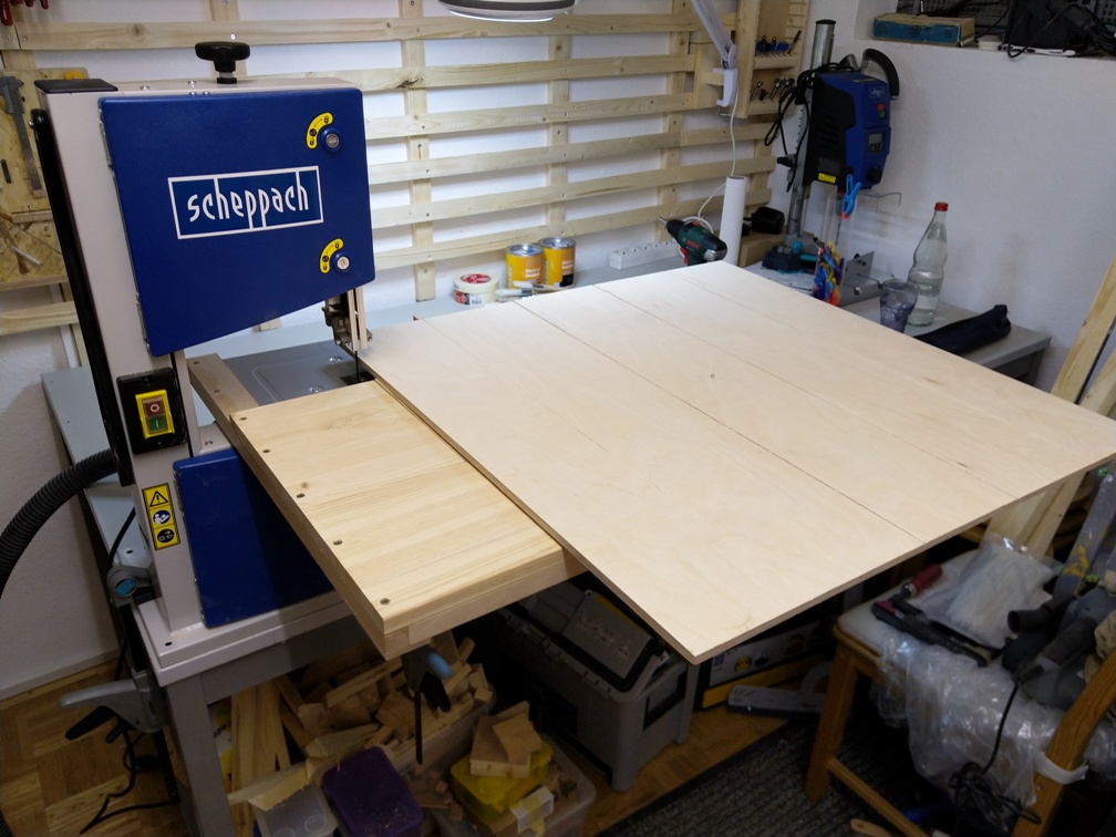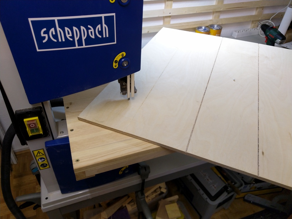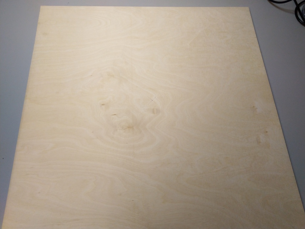 Wir haben uns für Birke-Multiplex als Holz für den Schild entschieden. Es ist relative stabil, nicht zu schwer und vor allem ist es wasserfest verleimt. Man bekommt es in verschiedenen Dicken und Größen im lokalen Baumarkt. Wir haben als Grundkörper eine Platte von 700mm x 700mm mit 9mm Dicke genommen.