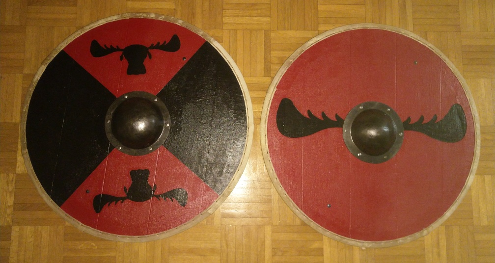 Wir haben nun unsere ersten Schilde gebaut und wollen euch zeigen und erklären, wie wir dabei vorgegangen sind. Auch ein paar Tipps werdet ihr hier finden, die wir angewendet haben, um die Bearbeitung zu vereinfachen. Doch nun als kleiner Vorgeschmack ein Bild der beiden ersten Schilde vom Elch-Clan: