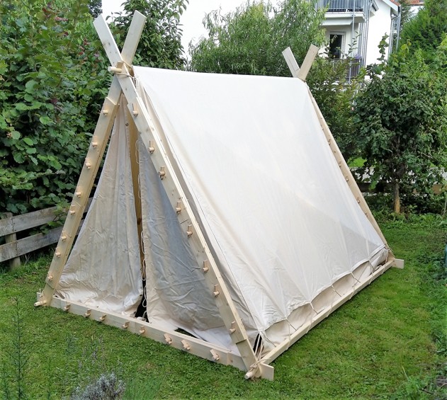 Hier könnt ihr sehen, wie wir unser erstes Zweimann-Zelt für unser Wikingerlager gebaut haben. Ein besonderes Ziel war es, dass die benutzten Stangen und Bretter nicht länger als max. 120cm werden, damit man das komplette Zelt in unserem Kombi transportieren und trotzdem noch 4-5 Leute mitfahren können. Keine leichte Aufgabe, wenn dabei auch noch auf sichtbare, modere Verbindung verzichtet werden soll.